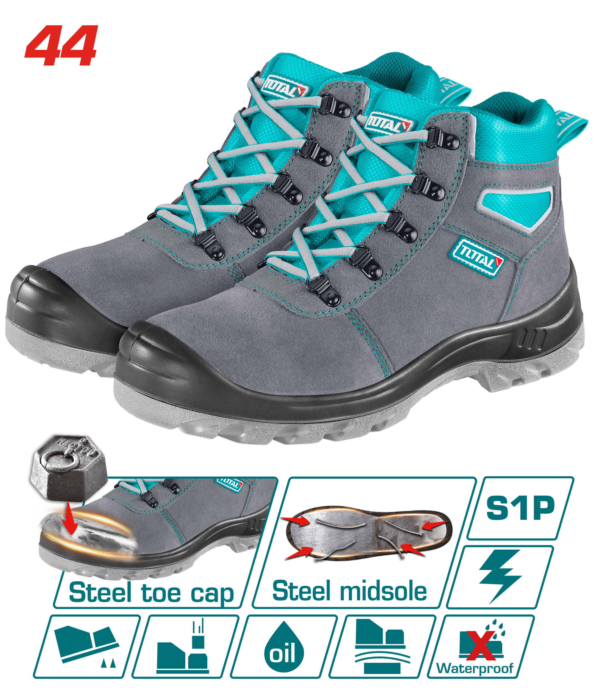 Botas de Seguridad Talla 44 Puntera y entresuela de Acero
