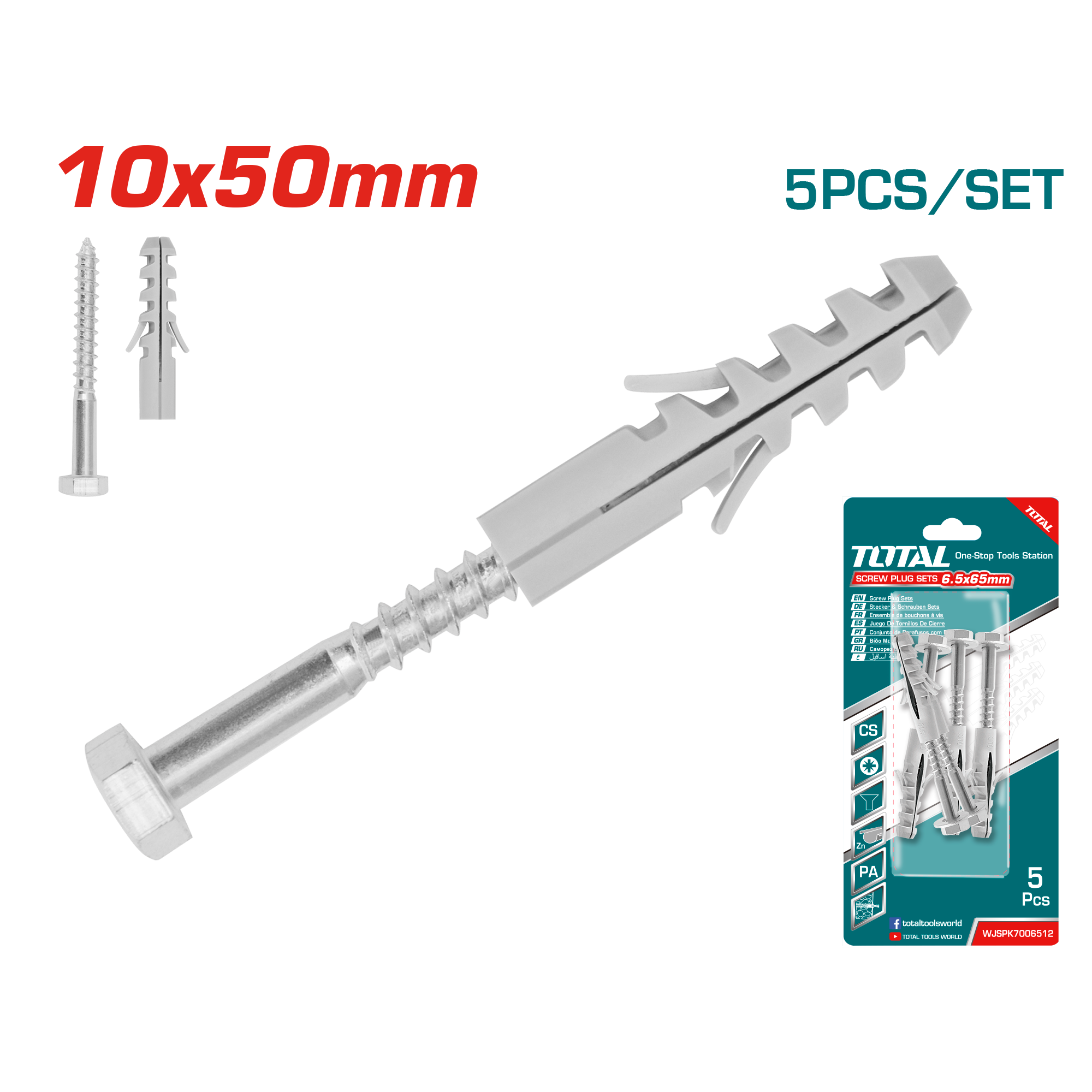 Juego de 5 Tornillos ST6.5x65mm cab hexagonal y taco 10×50 mm